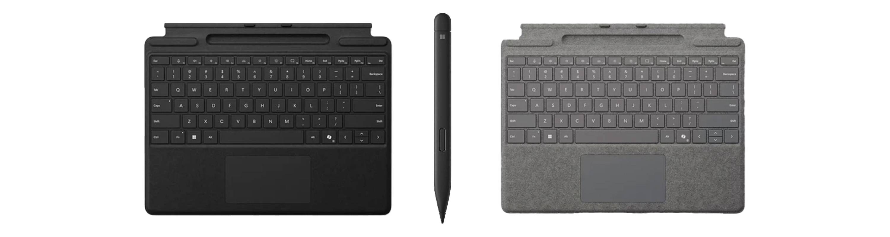 این دستگاه از حسگرهایی چون شتابسنج، ژیروسکوپ، روشنایی محیط، قطبنما، NFC و حسگر رنگ محیطی بهره میبرد. امنیت دستگاه با TPM 2.0، پشتیبانی از Windows Hello Face Authentication و قابلیتهای امنیتی Windows 11 Secured-core PC در سطح بالایی قرار دارد. یکی از مزیتهای اصلی Surface Pro 10 همراهی آن با کیبورد Surface Pro Copilot و قلم Slim Pen 2 است. قلم Slim Pen 2 با حساسیت بالا به فشار و لرزش، تجربه نوشتن طبیعیتری را ارائه میدهد و بهویژه برای طراحان و دانشجویان هنر بسیار کاربردی است. کیبورد همراه جداشونده نیز علاوه بر تایپ راحت، محفظهای برای شارژ بیسیم قلم دارد. این مجموعه باعث میشود Surface Pro 10 یک ایستگاه کاری قابل حمل و کامل باشد.