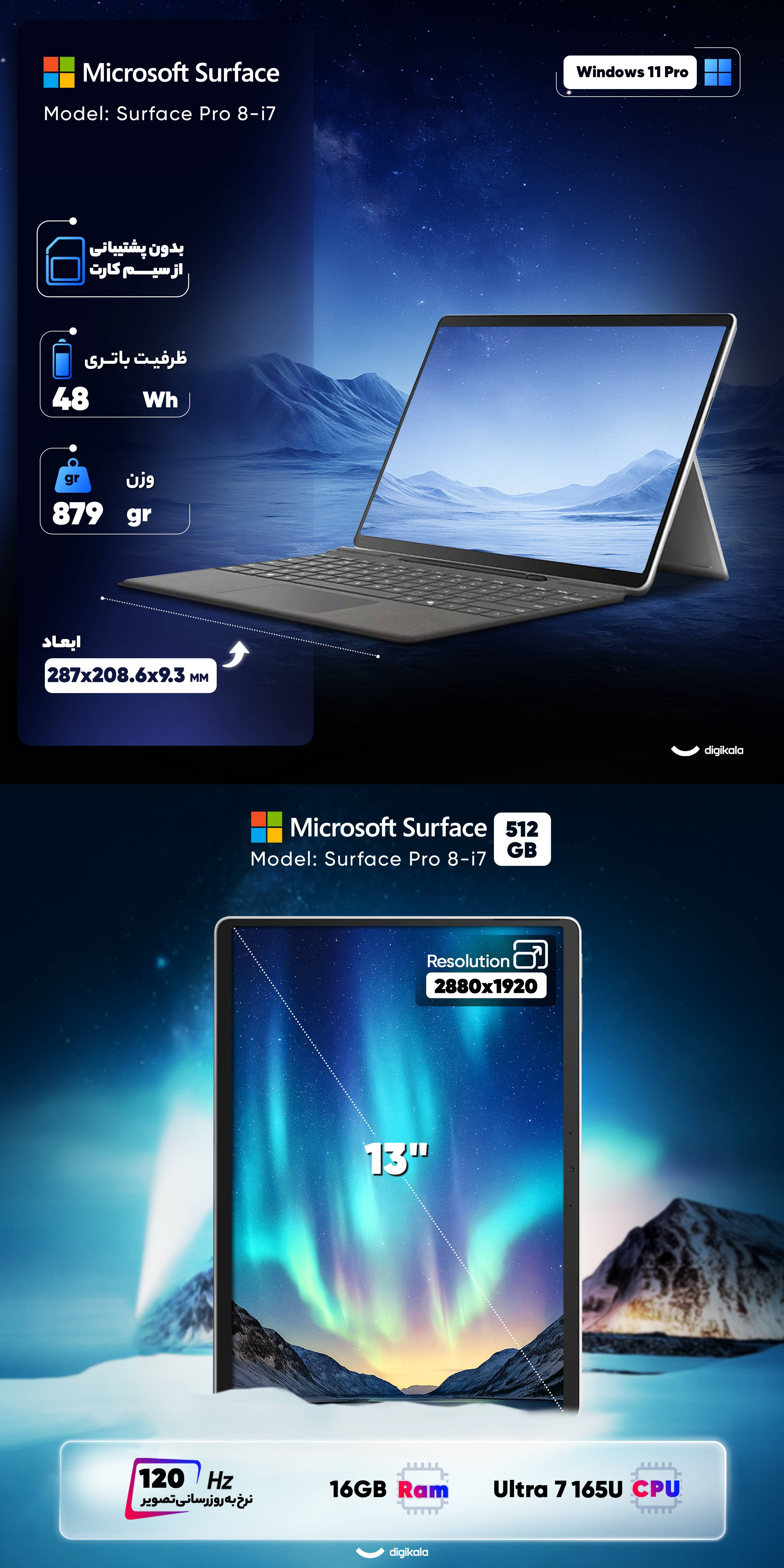 مایکروسافت Surface Pro 10 را باید یکی از کاملترین تبلتهای هیبریدی بازار دانست. نمایشگر 13 اینچی باکیفیت، پردازنده قدرتمند Core Ultra 7 با پشتیبانی از هوش مصنوعی، قلم و کیبورد همراه، ارتباطات مدرن و امنیت بالا، همه در یک دستگاه جمع شدهاند. این محصول بیشتر برای کاربران حرفهای، طراحان، مدیران و دانشجویانی مناسب است که میخواهند یک دستگاه برای همه نیازهایشان داشته باشند. اگر به دنبال تبلتی هستید که هم قدرت لپتاپ و هم انعطافپذیری تبلت را ارائه دهد، Surface Pro 10 یکی از بهترین گزینههای موجود است.