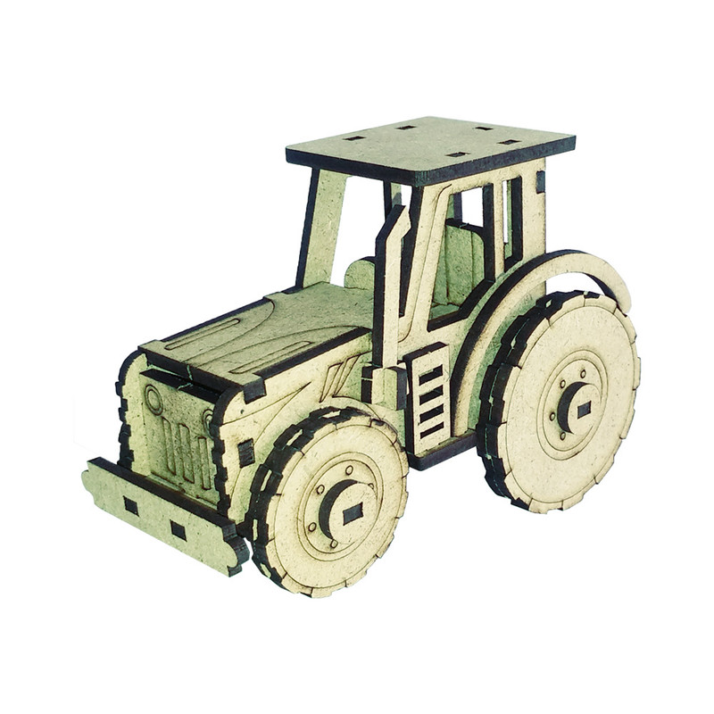 ماکت پازل سه بعدی مدل تراکتور، از جنس چوب نازک و بسیار سبک با 39 قطعه چوبی ظریف که همگی بر روی یک صفحه قرار گرفته، میتواند تا بیش از یک ساعت، علاقه مندان به پازل و ساختنی ها را سرگرم و مجذوب خود نماید. مشتاقان این گونه سرگرمی میبایست با ظرافت و حوصله، تمامی قطعات را به ترتیب شماره های درج شده بر روی راهنمای تمام رنگی مقوایی همراه آن، بدون نیاز به وارد آوردن فشار، به آرامی جدا کرده و در محلهای مربوط به خود نصب نمایند. در زمان جا دادن قطعات در سوراخهای پیش بینی شده حتما سعی شود با دقت و با اندکی فشار کنترل شده، قطعه را نصب نمایید. تنگ بودن بعضی از شیارهای تعبیه شده، به جهت بالا بردن استحکام نهایی ماکت بوده و نتیجه کار را بسیار مطلوبتر خواهد نمود. این ماکت پازل، ساخت بهکات با بهترین کیفیت و همچنین با هدف سهولت در خرید برای همه اقشار با هر سطح توانایی مالی، با مناسبترین قیمت ممکن تقدیم علاقه مندان گردیده. این سرگرمی، بعد از ساخت، همزمان بعنوان یک دکوری تزیینی جذاب، زینت بخش میز و اتاق منزل و محل کار خواهد بود. با صرف کمی سلیقه و خلاقیت میتوانید با استفاده از رنگهای آکرلیک بسیار ارزان و یک قلمو، هر رنگی به ماکت بدهید. و همچنین ماکت پازلهای 3 بعدی چوبی بعنوان یک سرگرمی فکری نیز برای کودکان و بزرگسالان بسیار مناسب بوده و توانایی نقشه خوانی و مهارت کار با دست را ارتقاع میبخشد.