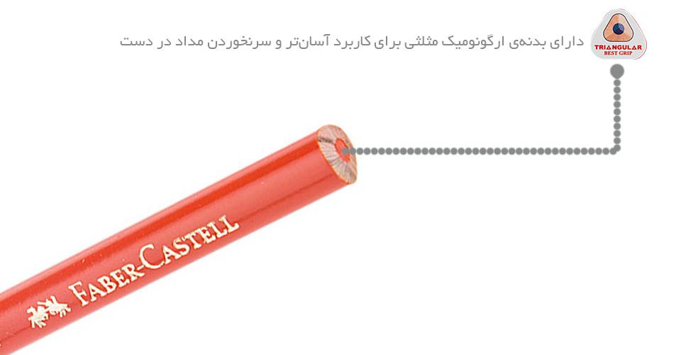 بدنهی مدادهای ترای کالر مثلثی است. چنین بدنهای در بین نوشتافزارها، ارگونومیک محسوب میشود؛ بهاینمعنی که مطابق با آناتومی دست و انگشتان کودک ساخته شده است. درواقع انگشتان کودک در راحتترین وضعیت ممکن روی بدنهی مدادهای ترای کالر قرارمیگیرد و فشاری به آنها وارد نمیشود. این بدنه در دست کودک سرنمیخورد و نقاشیاش را هم خط نمیزند.