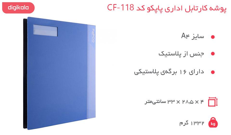 – دارای 16 برگه‌ی پلاستیکی – دارای 30 حلقه‌ی پلاستیکی – وزن: 1332 گرم